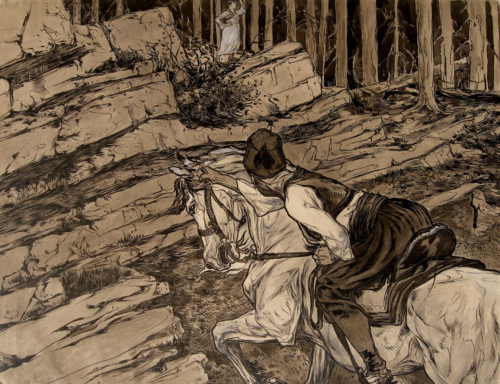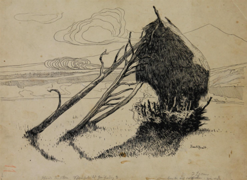 Ewald Arndt Čeplin, Ilustracija, tuš na papiru, 46 x 59 cm, inv. br. 2019 © UGBiH