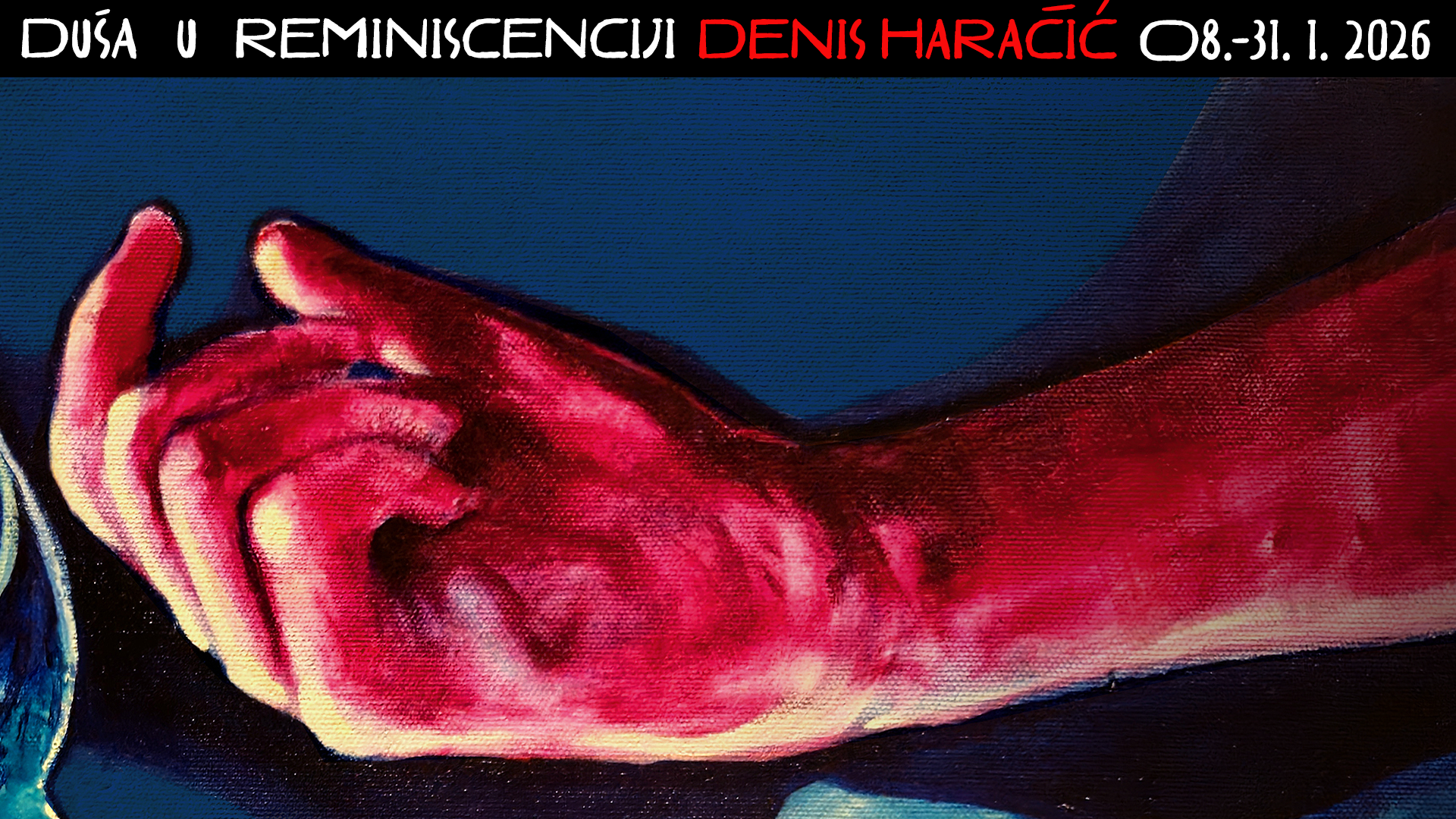 Umjetnička galerija Bosne i Hercegovine predstavlja samostalnu izložbu Denisa Haračića Duša u reminiscenciji, koja će biti otvorena 8. januara 2026. u 19 časova. Izložba donosi umjetničko promišljanje savremenog svijeta kroz teme izloženosti, ranjivosti i procesa zacjeljenja, a prati je predgovor historičarke umjetnosti Elme Hodžić.
