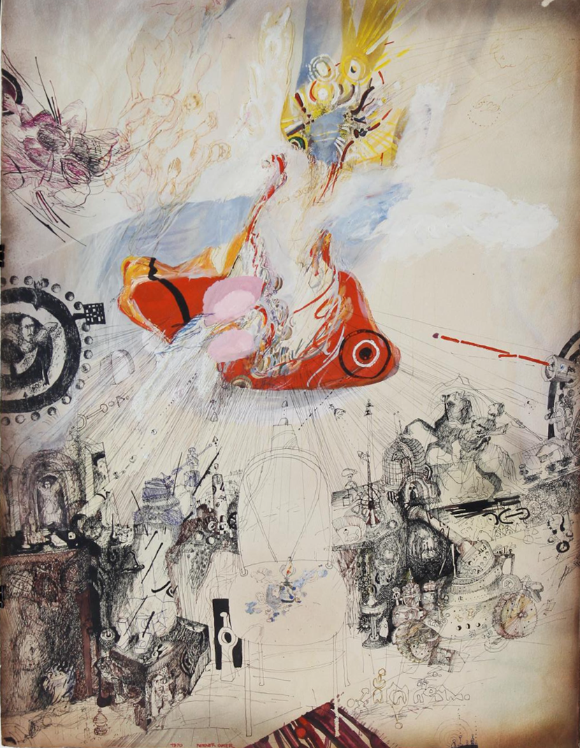 Omer Berber, Bombardovanje, 1970, pero, papir; akvarel, 65 x 50 cm, inv. br. 3405 © UGBiH