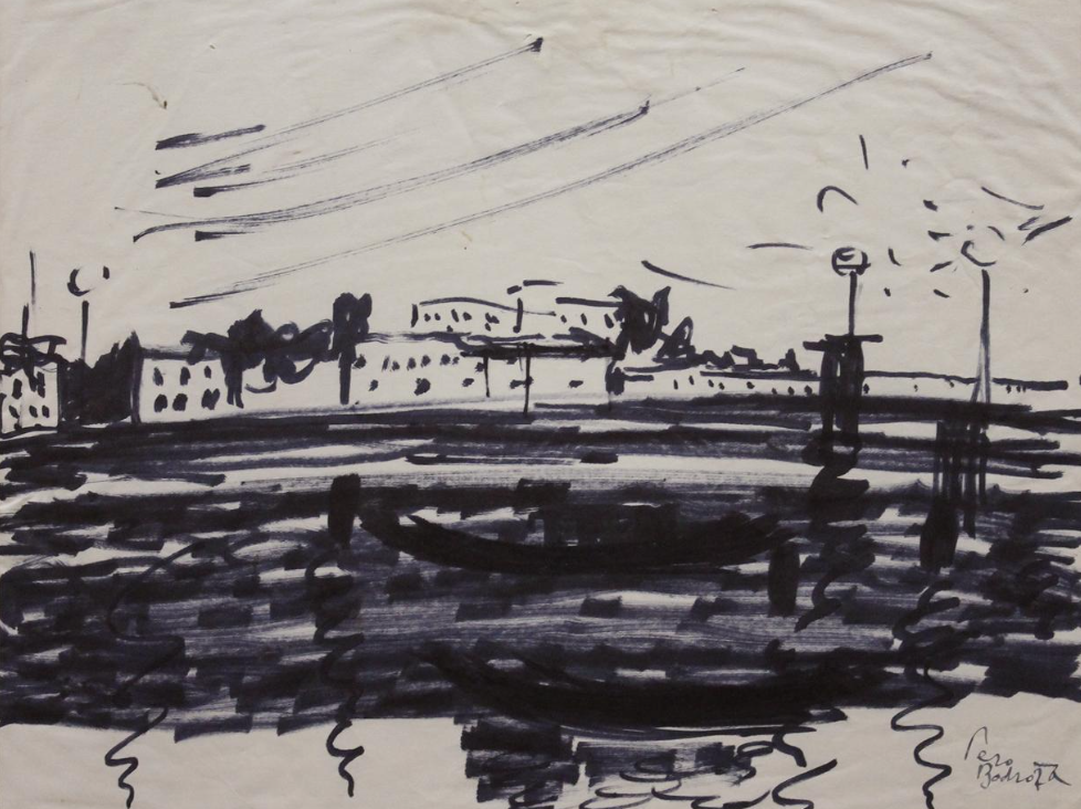 Pero Bodroža, Motiv iz Venecije I, tuš, papir, 29 x 23 cm, inv. br. 2191 © UGBiH