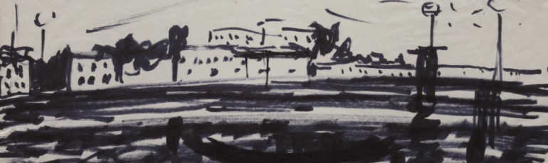 Pero Bodroža, Motiv iz Venecije I, tuš, papir, 29 x 23 cm, inv. br. 2191 © UGBiH Pero (Petar) Bodroža(Beograd, 1925 – 2020) Pero (Petar) Bodroža diplomirao je 1954. godine…